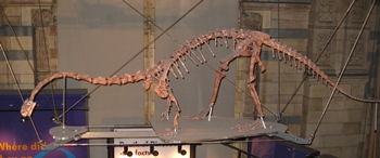 Massospondylus display on suspended platform, Natural History Museum, London, England.