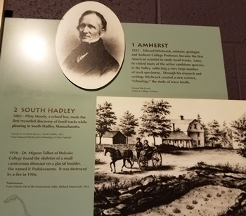 As the tracks were discovered, the historical significance of the 190-million-year-old tracks was obvious and within three weeks the state decided to preserve the land within its state park system. A temporary protective dome was built in 1969 to safeguard a large section of the tracks, but this collapsed several times over the next 8 years, and finally in 1977 a geodesic dome was built as an Exhibit Center to house the tracks and much more. While the hundreds of footprints can be seen inside, the building also features significant displays and educational information about the history of the track site and the Connecticut River Valley. There are classrooms and a small gift shop, as well.