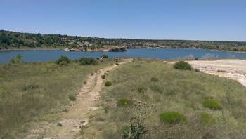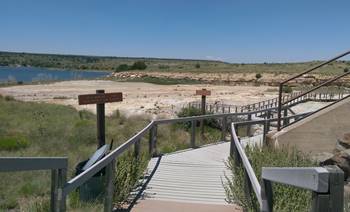 Clayton Lake State Park is definitely off the beaten path; the park is located about 12 miles north of Clayton, NM, and when we visited on a warm summer day there were maybe four or five other people in the park, none looking at dinosaur tracks. The drive from Santa Fe took a few hours, so my youngest son was very eager to get out and run a little when we got to the park. Thankfully, there is plenty of room to do that, and he ran a lot! Although it was a very hot summer day, the cool breeze off the lake made it much more pleasant. We enjoyed the walk around the lake and found the dinosaur tracks to be a nice reward at the end of our little hike.