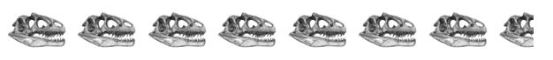 Juvenile Tyrannosaurus fossils have been extremely rare, and “Jane” is not only rare but is fairly complete. With so much interest in tyrannosaurs and their growth through the lifespan, the Burpee dinosaur has become one of the most studied dinosaur fossils in the world. Histological research determined that “Jane” was 11 years old when it perished. I say “it” because although the fossil was given a female name (named after a Burpee Museum benefactor), the sex of the animal has not been determined. Growth studies of Tyrannosaurus indicate that the animal would have gone through a huge growth spurt when it reached the age of fourteen or fifteen.