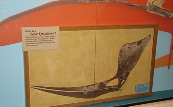 One of my favorite Cretaceous fossils to see is the incredible pterosaur Geosternbergia. Formerly a separate species of Pteranodon, a 2010 review reclassified this species as its own genus, Geosternbergia. It was one of the largest pterosaurs, and is viewed as the probable direct ancestor of the more well known Pteranodon. The holotype specimen of this creature is in Hays, and this fossil mesmerizes me every time I see it. The headcrest on the male Geosternbergia is very large and distinctive, reaching up and back a couple of feet, while the lower jaw extends about four feet. The wingspan of an adult Geosternbergia is estimated to range between ten and twenty feet. For comparison sake, the wingspan of an adult bald eagle is about six to eight feet. I see quite a few majestic bald eagles flying here in Nebraska, but I can only imagine what a Geosternbergia might have looked like in the air. Fortunately the fossils at the Sternberg Museum give us a pretty good idea!