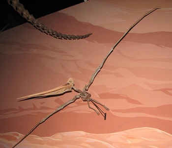 The Museum of Ancient Life at Thanksgiving Point in Lehi, Utah is one of the largest dinosaur museums in North America. Among the many fossil and cast skeletons on display are several pterosaurs. The relatively small Pteranodon is shown soaring up above the dinosaurs.
