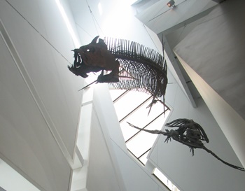 The wonderful display of the various inhabitants of the Cretaceous sea in the Field Museum contains a Xiphactinus that is is quite beautiful. The fossil fish is very long, and while not the largest such specimen, it is displayed in a very attractive way with the body resembling a large slinky.