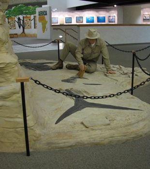 One of the most beautiful recreations of the Cretaceous sea can be found at the Sam Noble Museum in Norman. The background murals and the lifelike seaweed and plants that surround the fossils give the exhibit a wonderfully immersive feel. And you get two Xiphactinus fossils in the display! One is suspended in the air and appears to be “swimming” over the fossil of another that is embedded in the seafloor below. It’s a terrific display.