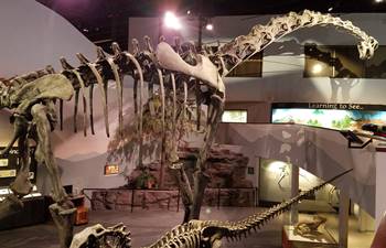 In Chicago, the Field Museum moved the Brachiosaurus mount after “Sue” the famous T. rex arrived and was ready for display in the year 2000. After its brief, 6-year reign in the center hall, the Brachiosaurus mount went to the friendly skies of the United Airlines terminal at O’Hare International Airport, where it can still be seen today. Do not despair if you don’t fly United and are visiting the Field Museum: a metal cast of this beloved dinosaur still stands outside at the northwest corner of the building, facing the beautiful Chicago skyline.