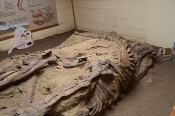 One of the great features of Dinosaur Provincial Park is the onsite exhibit in the Visitor Centre. A museum in its own right, the building houses numerous fossils from the park as well as a small gift shop. For a small fee you can enter the museum portion of the Visitor Centre. We thought it was definitely worth the cost. As soon as you enter the building you see a fantastic dinosaur suspended from the ceiling, an older cousin of Tyrannosaurus rex called Gorgosaurus.