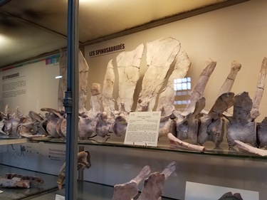 Many of the real treasures on display at the museum can be found along the sides of the main floors. Cabinets and shelves can be found throughout and this is where some of the more interesting and unique specimens are displayed. I knew the holotype specimen of the large ancient dragonfly Meganeura was housed in Paris. It took awhile, but I eventually found it on display in one of the cabinets. It was in these cabinets that I found quite a few fossils that I have never seen displayed anywhere else. One of my favorites was Metriorhynchus, an ancient crocodyliform that lived in what is now France during the Jurassic period. Another beauty from the cabinets was a cast of known material from Ichthyovenator, a large spinosaurid dinosaur discovered in Laos.