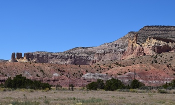 We were very fortunate during our visit to Ghost Ranch. My younger son was with me on this trip, and we had a great time, especially thanks to the very friendly paleontologist (thanks again, Alex!) who took time out of his busy day to show us around the museum and even look at some fossils in his lab that he is currently studying. We spent some time hiking around Ghost Ranch, and it was easy to admire the beautiful scenery, but it was a very hot day so we didn’t get to go as far as we had hoped. Still, the trip was well worth our time, and we will surely go back the next time we visit New Mexico.