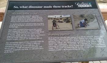 It is unclear which dinosaur(s) made the tracks. There are very few dinosaur fossils from North America from the Middle Jurassic time period. Most of the dinosaurs identified from this period have been found in China and in Europe. The best conclusion so far is that the tracks were made by small-to-medium sized bipedal carnivorous theropod dinosaurs, probably weighing between 50 and 400 lbs. It is likely that the tracks were made by several different types of dinosaurs.