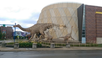Having lived in Indiana for the better part of a decade during my years in graduate school, I have long been familiar with The Children’s Museum of Indianapolis (TCMI). The museum will always hold a special place in my heart since it is the place where my wife and I first spent a day together. We have been back a few times since, but just recently were able to bring both our sons there. My youngest son walked past the giant Brachiosaurus sculptures on the way into the building, immediately saw a statue of the character “Bumblebee” from the Transformers series, and announced “This is my favorite place in the world. Well, besides Disneyland.” And that was before he got to see many of the great exhibits. As a children’s museum, TCMI is particularly hands-on and geared toward young guests, but this is one children’s museum that adults also love. There is so much to do here beyond looking at dinosaurs that it is almost impossible to do it all in one day, but fortunately for this blog, I will focus on the dinosaurs.