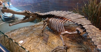 The highlight exhibit is fantastic, but there are other important and interesting dinosaurs to see in Indianapolis. One prehistoric dinosaur-era reptile that drew a lot of attention from the children was a very large cast of Sarcosuchus, one of the largest crocodile-like reptiles to ever exist. It was about twice the size of a modern saltwater crocodile, and it was easily capable of preying on a fully-grown adult dinosaur that was unlucky enough to be getting a drink when Sarcosuchus was nearby and hungry.