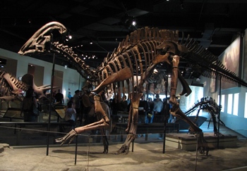 Once inside the main dinosaur hall, there are plenty of great dinosaur displays to check out. Some of my favorites include the large sauropod Apatosaurus, posed standing next to a rare juvenile sauropod from Madagascar called Rapetosaurus. Most dinosaur families are represented in the hall, including favorites such as Stegosaurus and Triceratops.