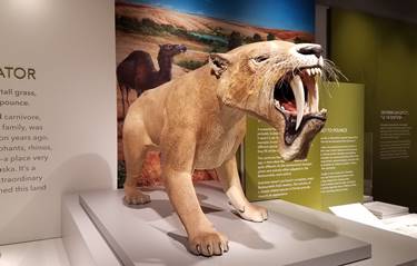 In 2019 a new exhibit opened on the museum’s fourth floor called “Cherish Nebraska” which features several new galleries. A few of the new galleries showcase prehistoric life in Nebraska. As soon as you enter the exhibit you are sure to notice the life-size Bison antiquus, near it is a life-sized saber-tooth carnivore that prowled in ancient Nebraska over 7 million years ago named Barbourofelis.